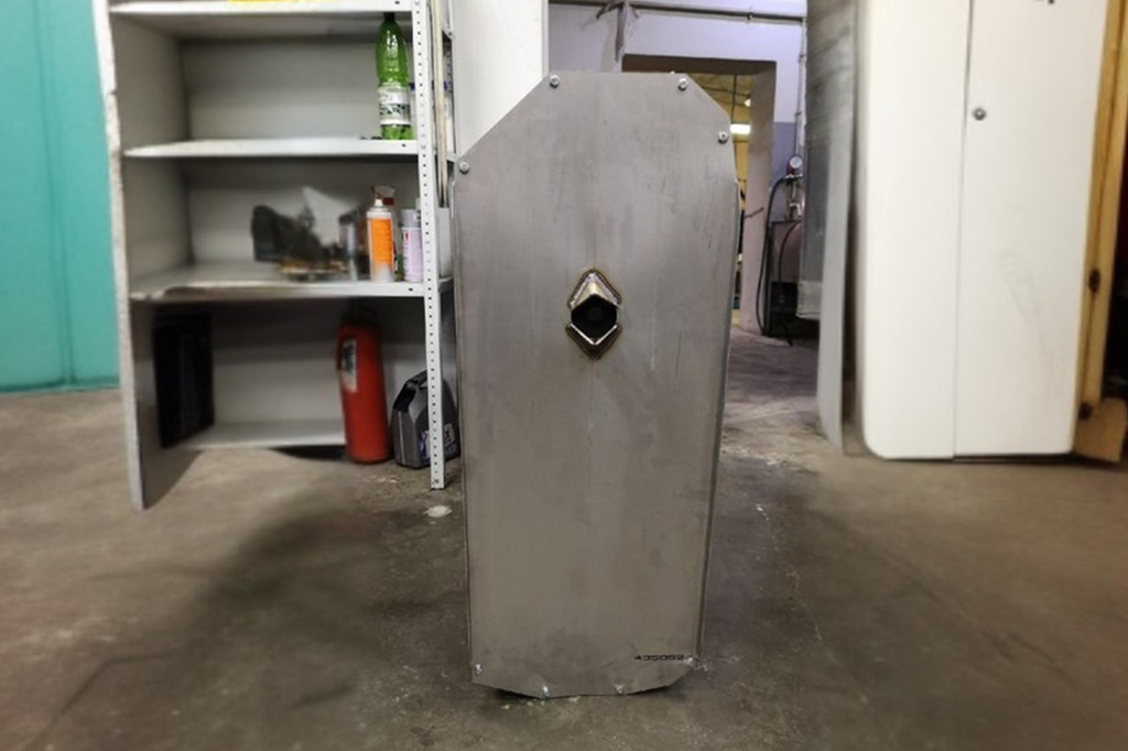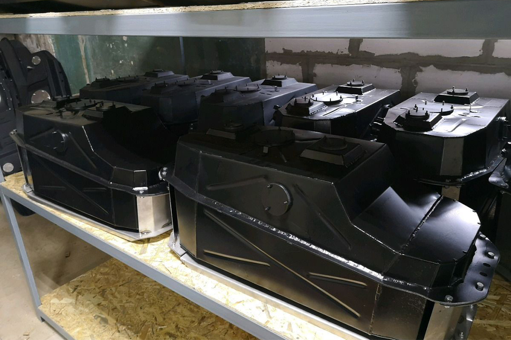 Обратите внимание данный бак комплектуется защитой из нержавеющей стали (толщина 1.5 мм). Сам бак изготовлен из алюминия АМцМ (толщина стенок 2.5 мм, толщина несущего элемента, которым бак крепится к раме - 4 мм, толщина фланцев навесного оборудования - 8 мм). Снаружи бак окрашен порошковой краской для защиты от гальванической коррозии и царапин.