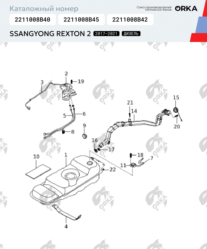 Пластиковый бак SsangYong Rexton 2 (Саньенг /Санг енг Рекстон) изготовлен по методике цельного литья. Цельно литые баки в отличие от составных не имеют протечек, а значит существенно ниже риск течи топлива. Толщина стенки бака составляет 10 миллиметров, что в свою очередь дает более крепкую конструкцию в целом и надежность при ударах. Бак полностью соответствую оригинальным заводским бакам - форма, размер, расположение технологических отверстий и пазов для креплений! Замена старого бака на новый пройдет без всяких проблем. Внутри бака установлены перегородки по заводским чертежам, чтобы избежать неравномерного распределения топлива. Бак прошёл официальную сертификацию по стандартами ГОСТ Российской Федерации!